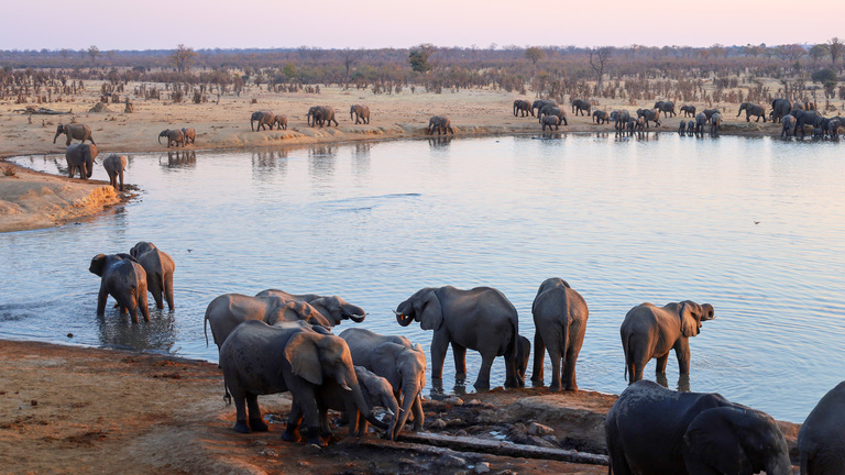 Hwange National Park – Zimbabwe’s largest game reserve, known for huge elephant herds, lions, giraffes, and many bird species.